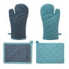 HOME ELEMENTS Chňapka s magnetom a podložka z recyklovanej bavlny, modrá