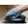 Chňapka s magnetom a podložkou z recyklovanej bavlny v kombinácii farieb svetlo modrej a tmavo modrej.