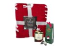 darčeková hrejivá sada | 3 utierky – rozmer 50 × 70 cm Čaj – zelený čaj, 2 × 5 ks 2 sviečky – bez vône, s potlačou, 220 g Vonné tyčinky – 20 ks