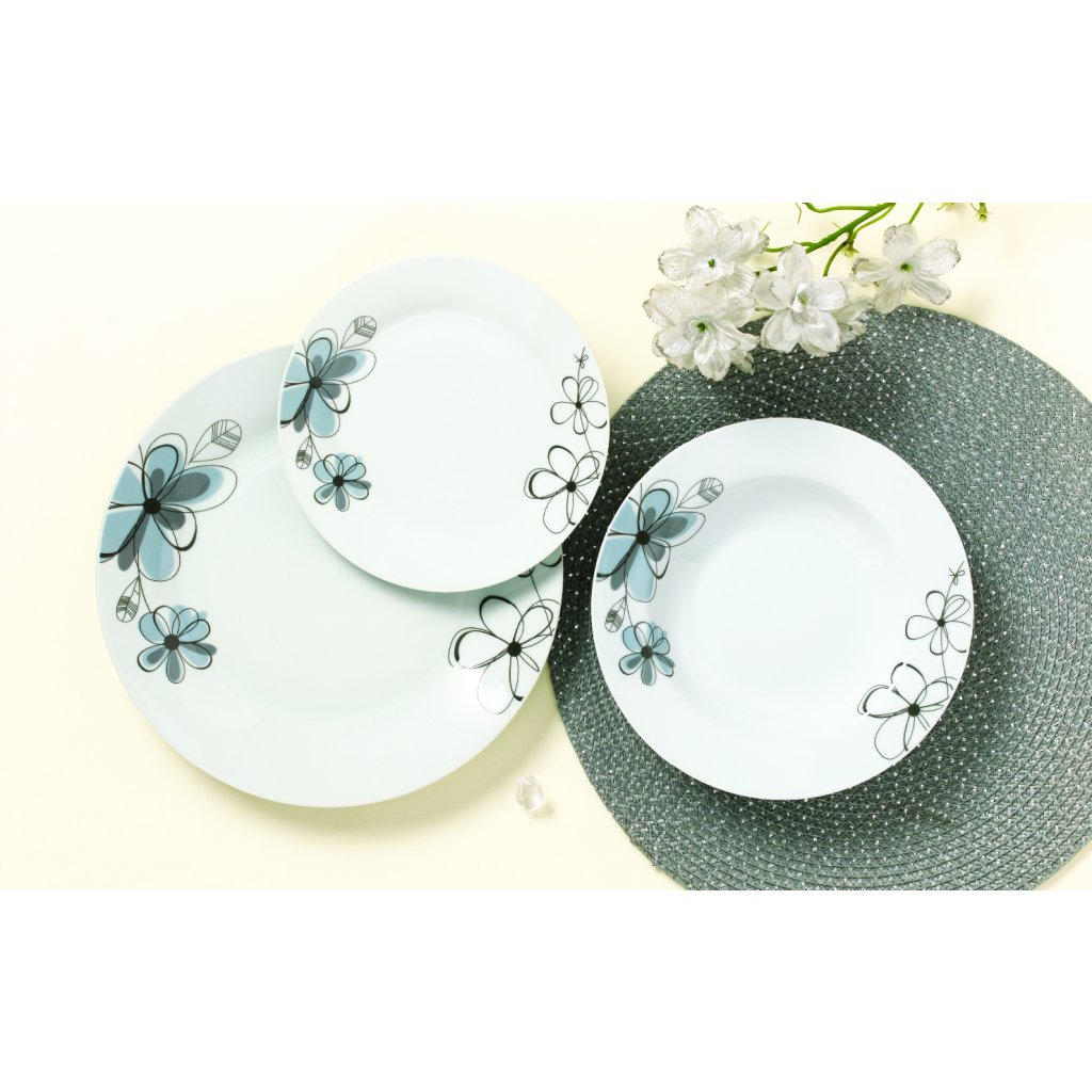 Jedálenská súprava okrouhlých tanierov, 18 ks, Šedá kvetina