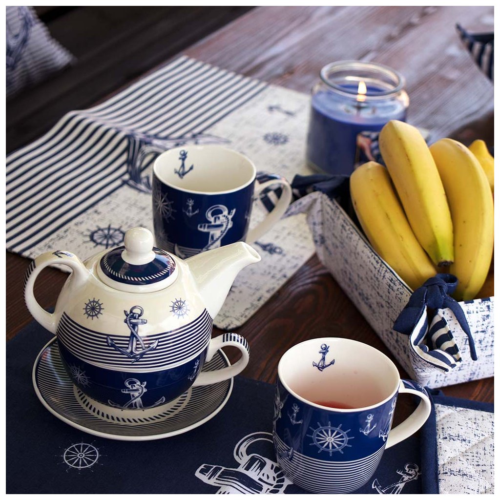 Bavlnené prestieranie v námorníckom štýle zútulní každú kajutu, ale i interiér vo vašom byte či dome. Prestieranie je z druhej strany zdobené námorníckymi pruhmi.