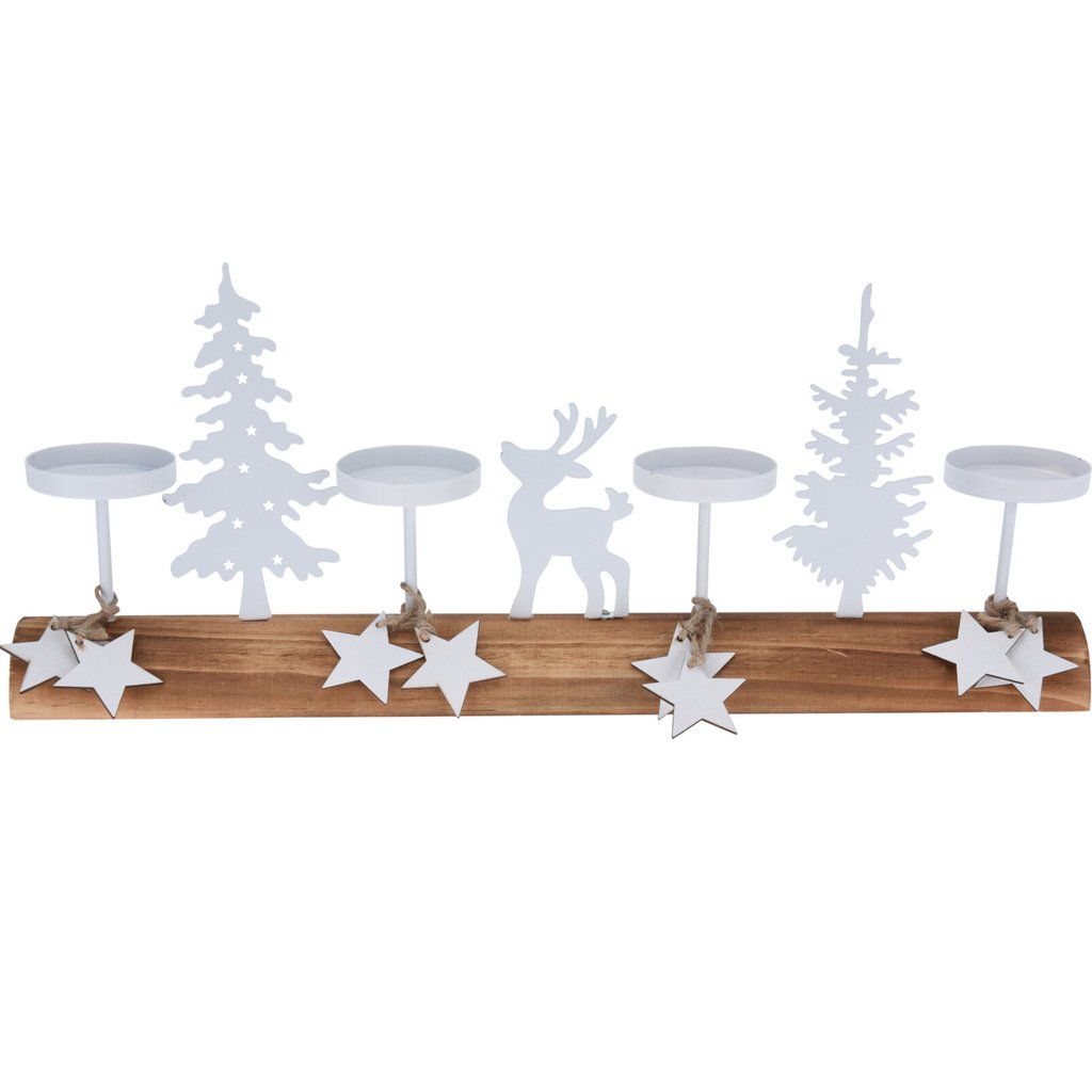 Tento elegantný adventný svietnik je ideálny na vytvorenie čarovnej vianočnej atmosféry. Dizajn s motívom jeleňa dodáva dekorácii prirodzený a štýlový vzhľad, ktorý sa hodí do každého interiéru. Svietnik je určený na čajové sviečky, ktoré počas adventného obdobia krásne rozžiaria váš domov.