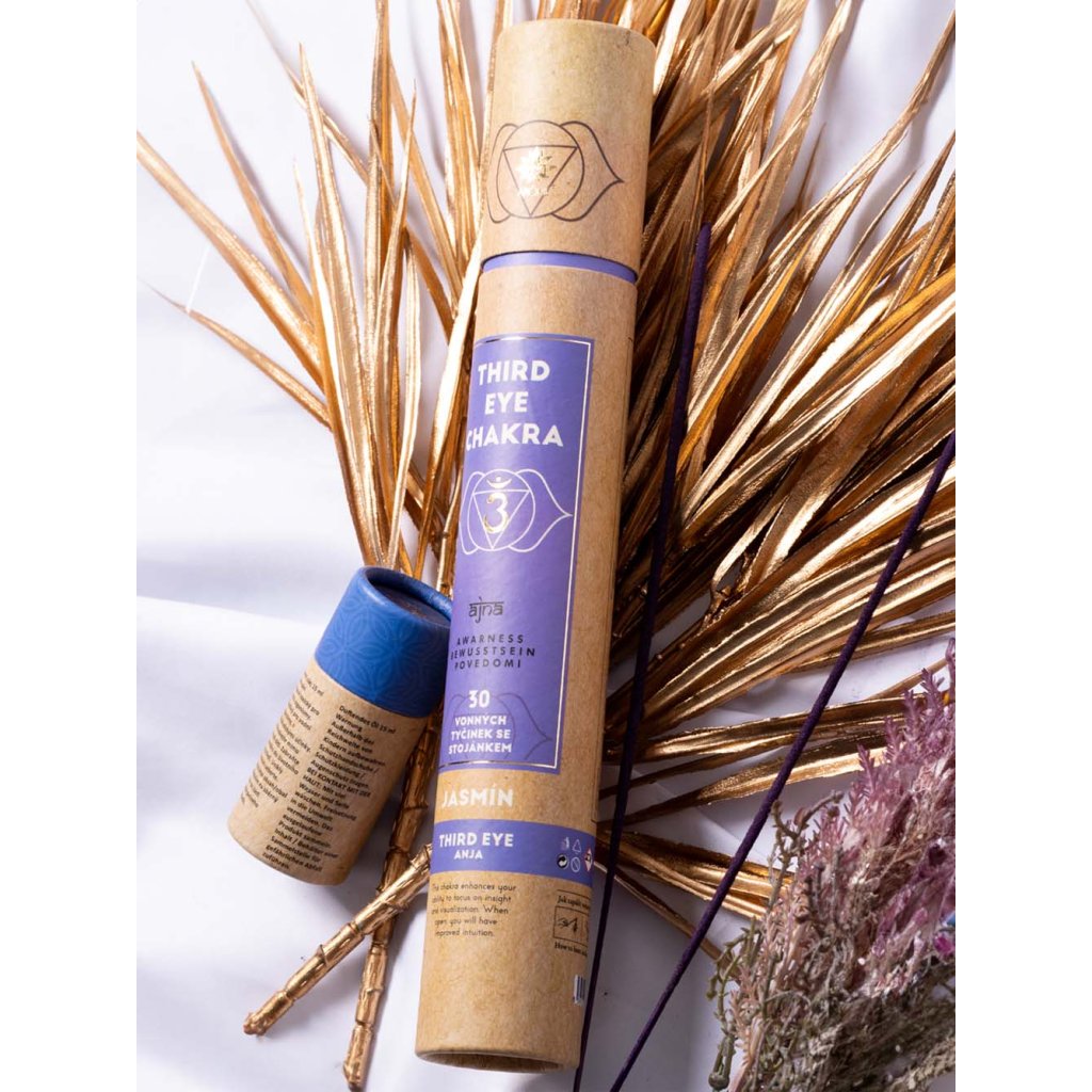 Dymiaca tyčinka s vôňou jazmínu navodí jedinečnú a výnimočnú atmosféru pre meditáciu a oddych a pomáha stimulovať čelnú čakru – čakru tretieho oka. V hinduistickom učení sa verí, že ak sú všetky čakry v tele v harmónii, harmonický je aj život človeka.