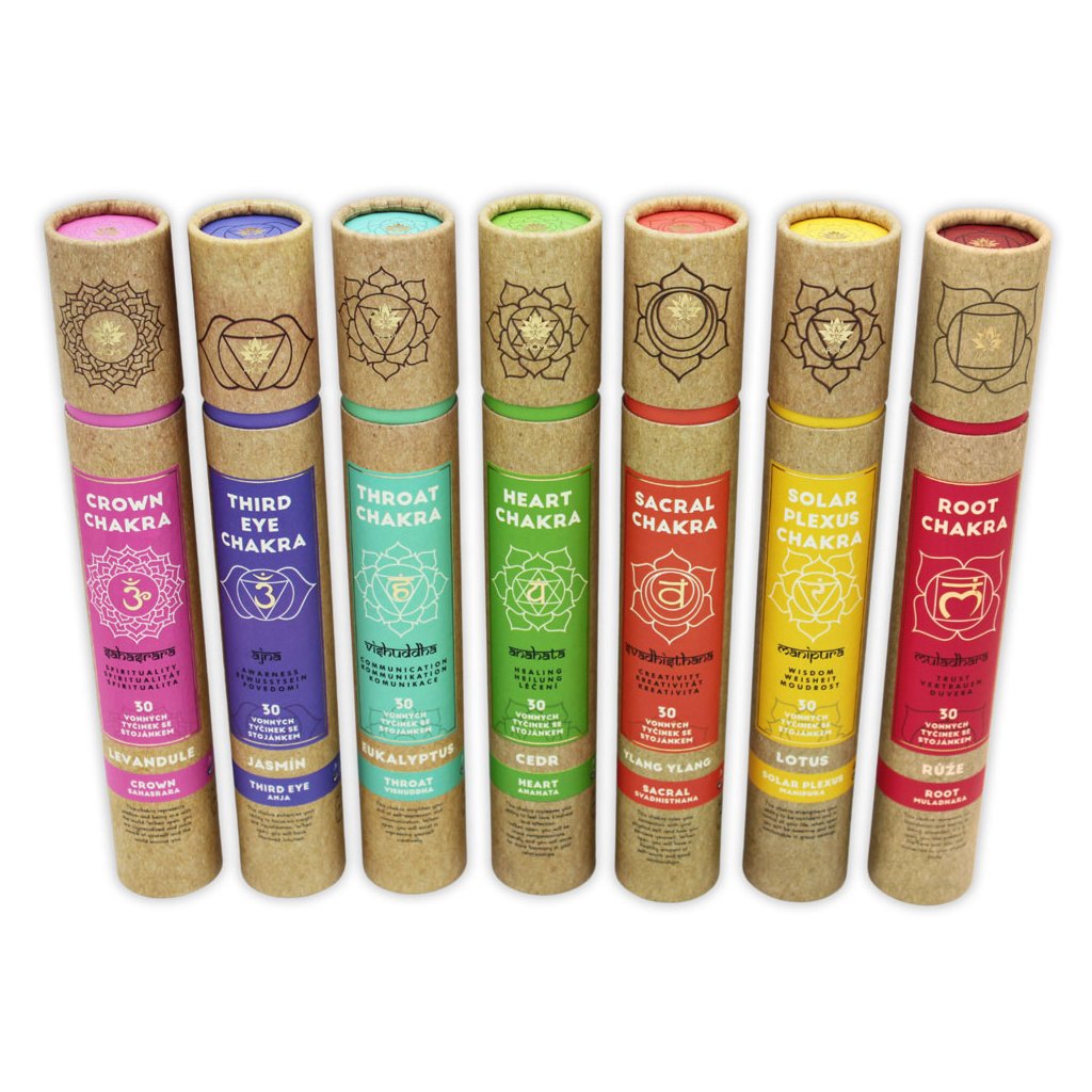 Indické vonné tyčinky ARÔME Balanced Chakra s vôňou eukalyptu sú určené na stimuláciu piatej čakry – krčnej čakry.
