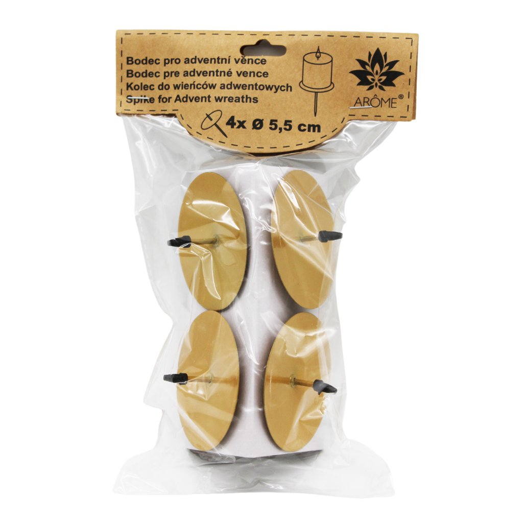 4 kusy kovových hrotov na sviečky, zlatá farba, priemer misky 5,5 cm