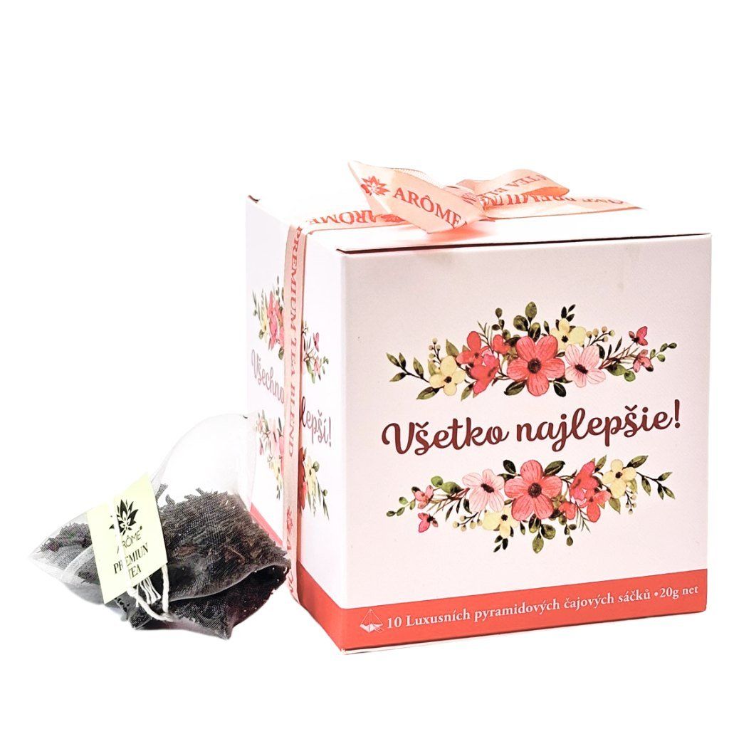 Päť vrecúšok od každej príchute je zabalených v peknej papierovej škatuľke s nápisom Všetko najlepšie. Ideálne ako darček pre vašich blízkych.