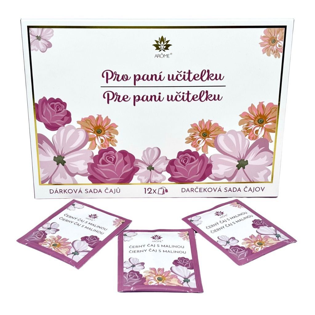 12 kusov čajových vrecúšok zabalených do krásnej obálky s nápisom Pre pani učiteľku. Na zadnej strane je možné napísať, od koho a pre koho je darček určený.