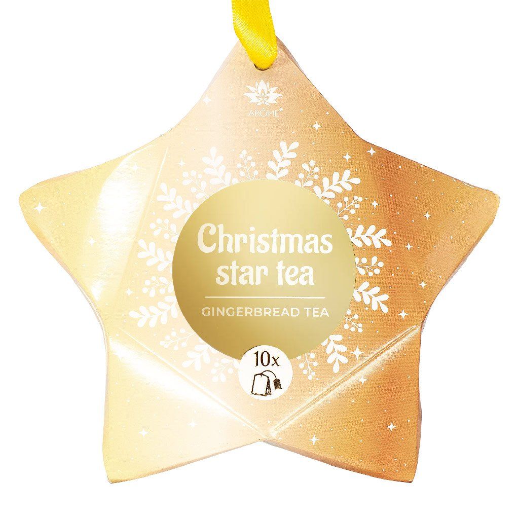 10 čajových vrecúšok je zabalených v elegantnej krabičke v tvare hviezdy s vianočným motívom – krásny drobný darček pre vašich blízkych alebo štýlová dekorácia na vianočný stromček.