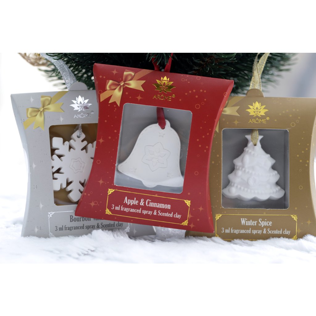 Darčekové balenie vonného ílu v tvare zvončeka a 3 ml vonného spreja. Jednoducho nastriekajte vonný íl a zaveste alebo umiestnite na vhodné miesto. Vôňa jabĺk a škorice sa postupne uvoľní do miestnosti a vytvorí krásnu jesennú a vianočnú atmosféru.