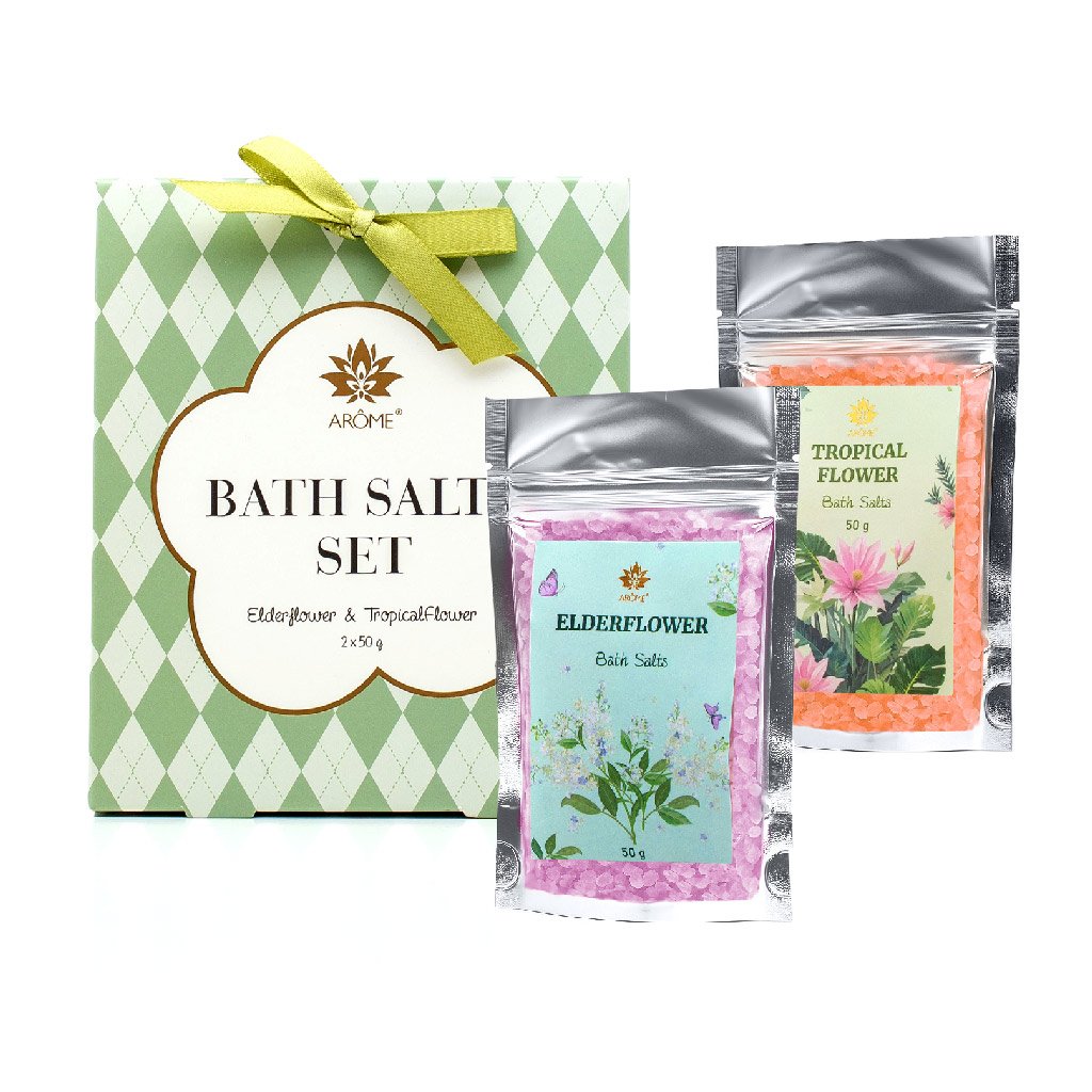 Voňavá sada kúpeľových solí ARÔME Elderflower & Tropical Flower premení bežný kúpeľ na exotický zážitok. Kombinácia bazy s jemne sladkastým a osviežujúcim arómom a tropických kvetov s výraznou vôňou dodá každej kúpeľi nádych luxusu. Vďaka obsahu glycerínu zostáva pokožka po kúpeli hebká, vyživená a príjemne prevoňaná. Elegantné zelené balenie so stužkou z nej robí ideálny drobný darček na každú príležitosť.