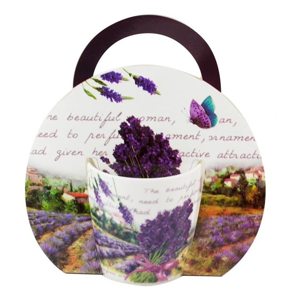 Veselý hrnček s obľúbenou levanduľou. Porcelánový hrnček má 300 ml
