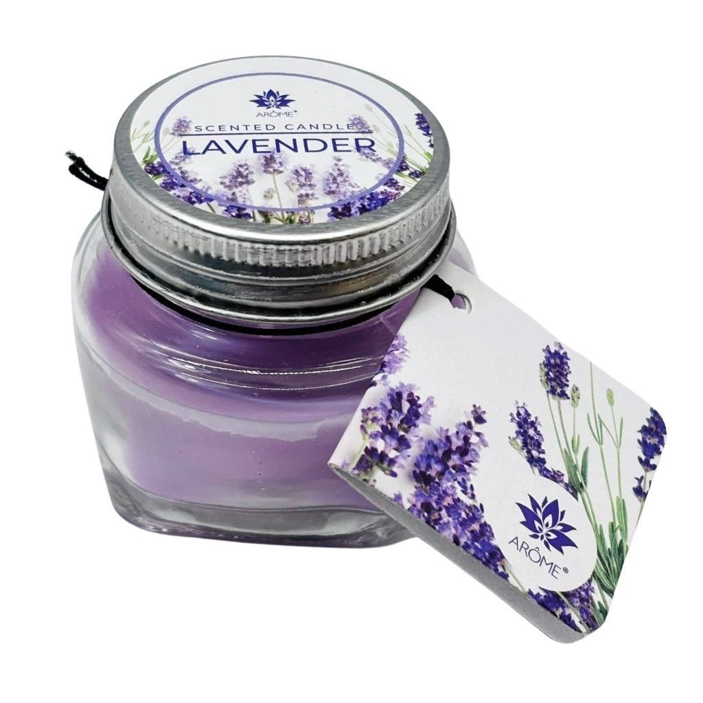 Vonná sviečka v sklenenej dóze s viečkom, doba horenia 8 hod. Vôňa levandule. S visačkou na venovanie.