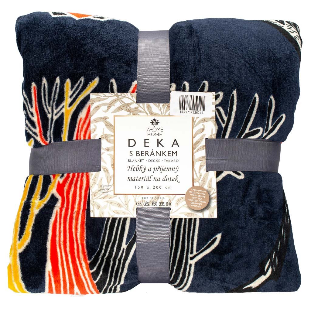Táto mikroplyšová deka s baránkom zaujme originálnym dizajnom s farebnými líniami a motívom vetvičiek na tmavom podklade. Kombinuje moderný štýl s útulnosťou, takže krásne doplní interiér a dodá mu jedinečný vzhľad. Je ideálna na oddych na gauči, v posteli aj ako nápaditý darček.
