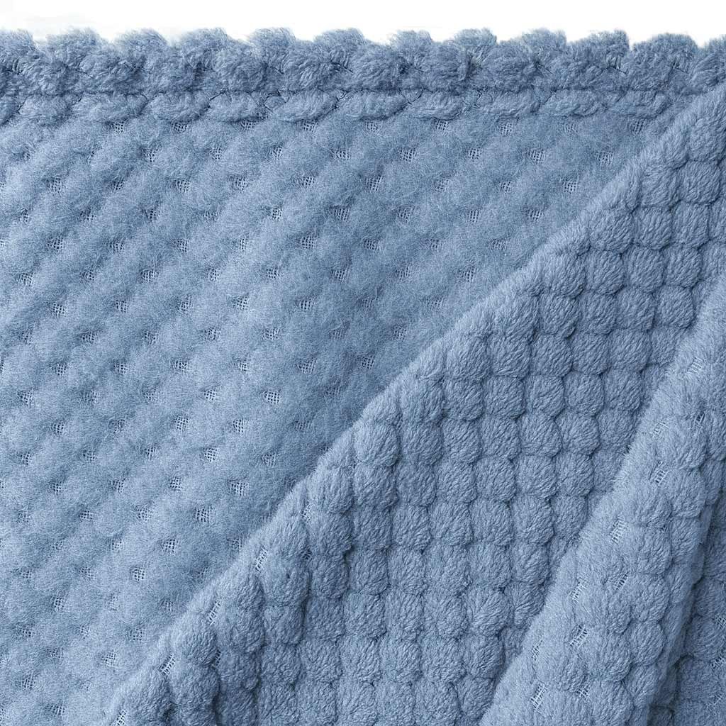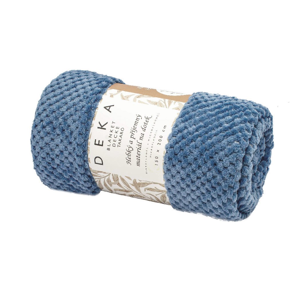 Doprajte si oddych s mikroplyšovou dekou v modrom odtieni. Jemná vaflová štruktúra vytvára decentný plastický povrch s moderným vzhľadom. Hebké mikrovlákno je zamatové na dotyk, príjemne hreje a je ľahké – ideálne na večerný oddych aj ako elegantný doplnok do spálne či na gauč.
