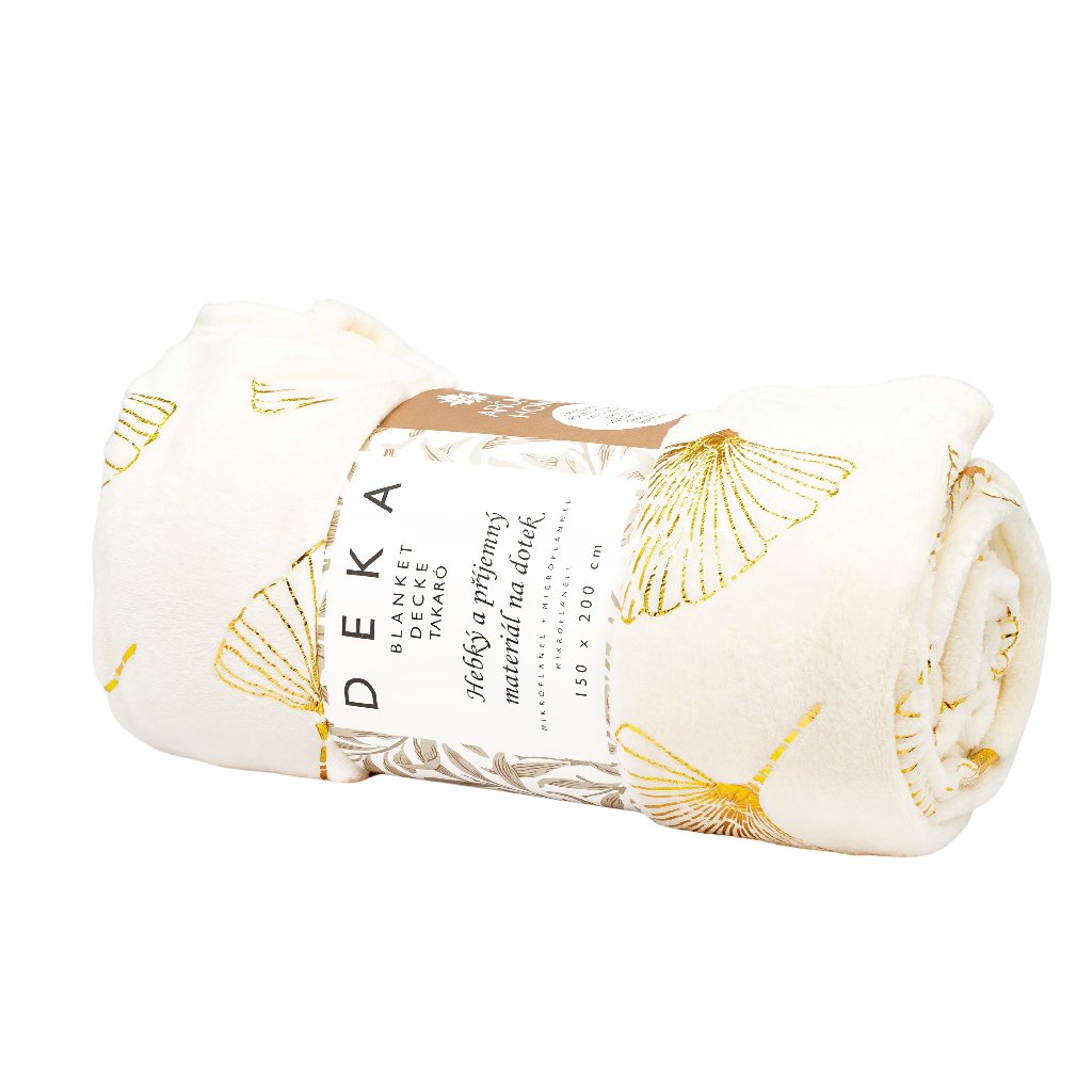 Vneste do interiéru prírodnú eleganciu s hebkou mikroplyšovou dekou bielej farby, ktorú zdobia zlaté listy ginkga. Jemný botanický motív pôsobí vzdušne a neobvykle, takže skvele ladí s moderným, skandi aj glamour štýlom. Zamatovo hladké mikrovlákno je príjemné na dotyk, hrejivé a pritom ľahké – ideálne na každodenný relax na gauči i ako dekoratívny prehoz do spálne.