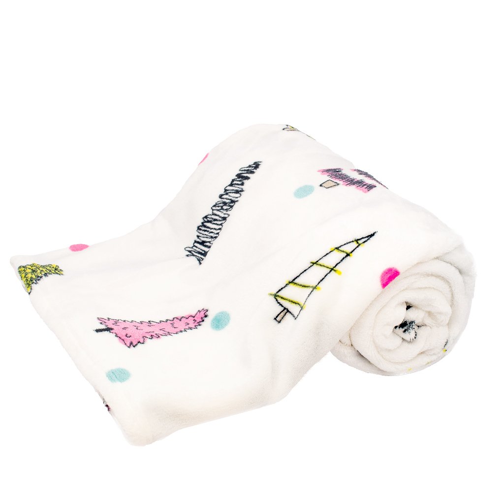 Rozveselte svoj domov touto hravou dekou s veselým motívom vianočných stromčekov na bielom podklade. Farebný vzor pôsobí optimisticky a sviatočne, takže sa perfektne hodí na vytvorenie útulnej atmosféry počas zimných dní. Deka je mäkká, hrejivá a príjemná na dotyk – ideálna na chvíle oddychu i rodinnú pohodu.