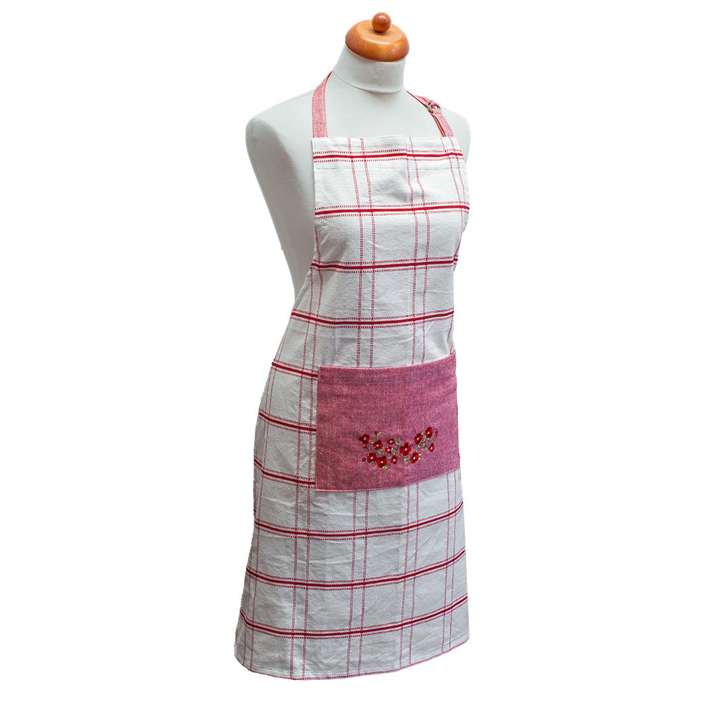 Štýlová a praktická zásterka zo 100 % bavlny zaistí pohodlie a ochranu pri varení či pečení. Klasický károvaný vzor dopĺňa jemná výšivka červených makov, ktorá dodá vašej kuchyni romantický vzhľad.