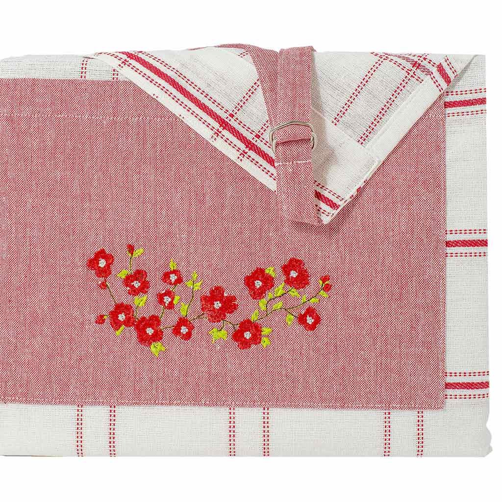 Dá sa zladiť s ďalším kuchynským textilom, ako sú chňapky a utierky. Výborne sa tak dajú skombinovať do celého setu. Kuchynský textil s výšivkou dodá vašej kuchyni originálny vzhľad a útulnosť.