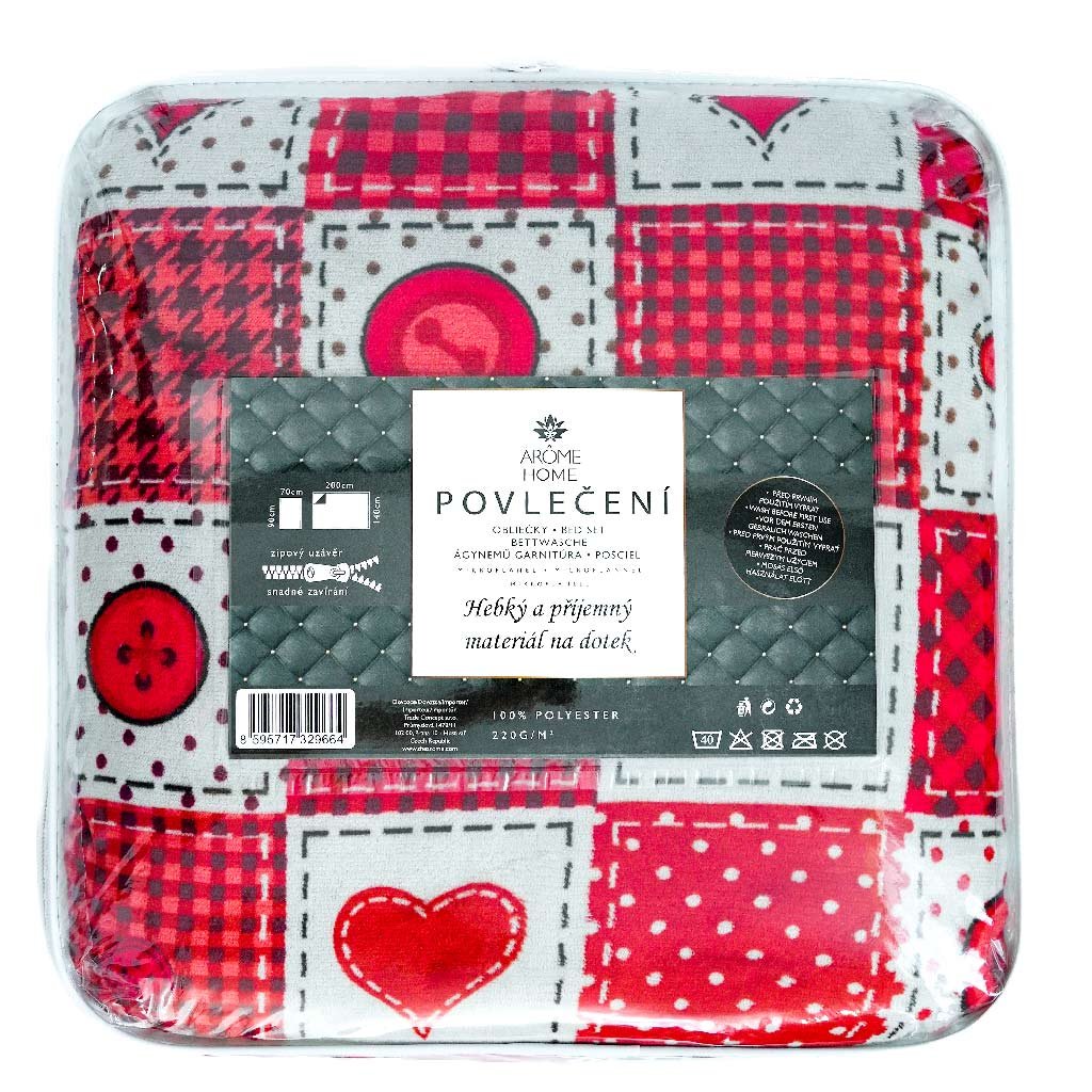 Zahaľte svoju spálňu do hebkosti a tepla s obliečkami z mikroflanelu s romantickým motívom patchworku so srdiečkami a gombíkmi. Kombinácia červených a sivých tónov navodí útulnú atmosféru domova.