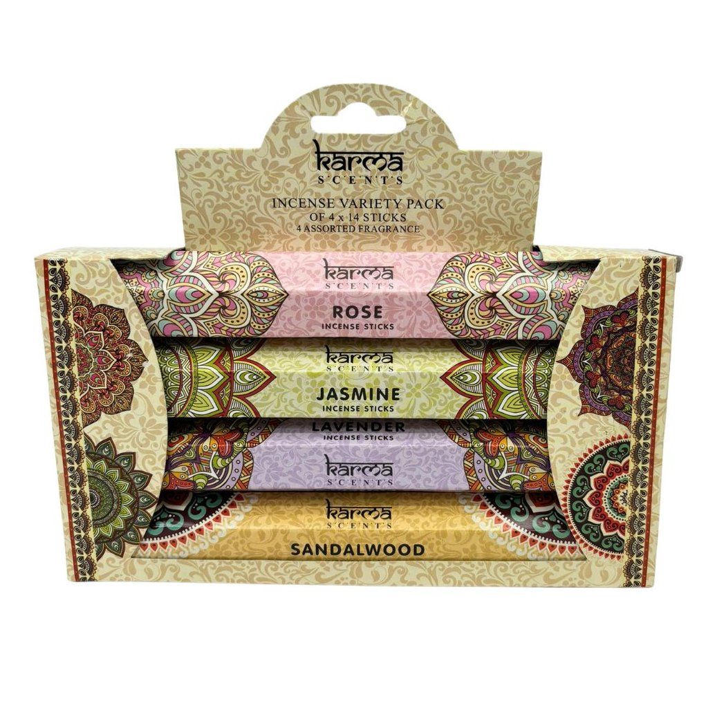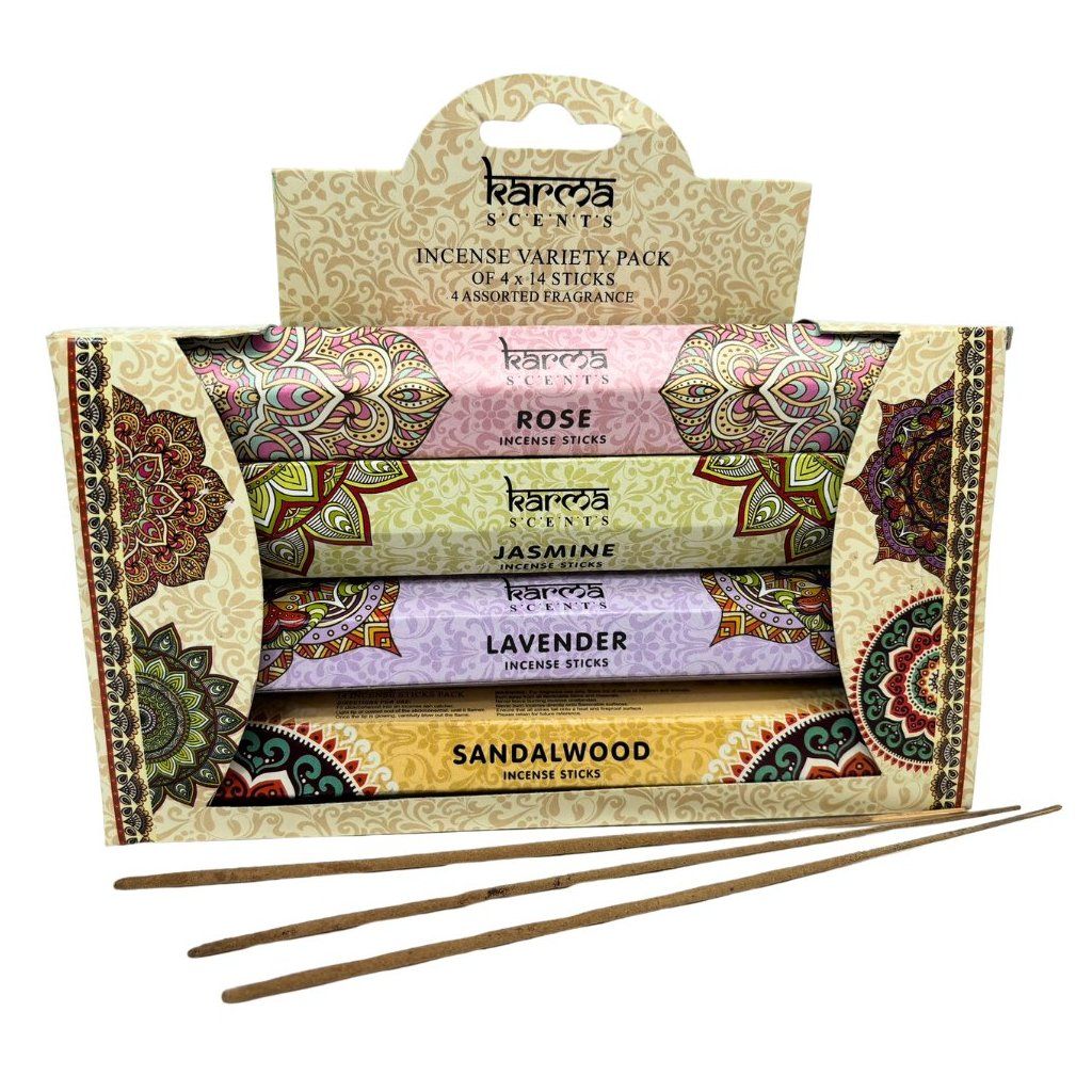 Darčeková kazeta s vonnými tyčinkami Karma z kolekcie ARÔME obsahuje výber zo 4 druhov vôní vonných tyčiniek.