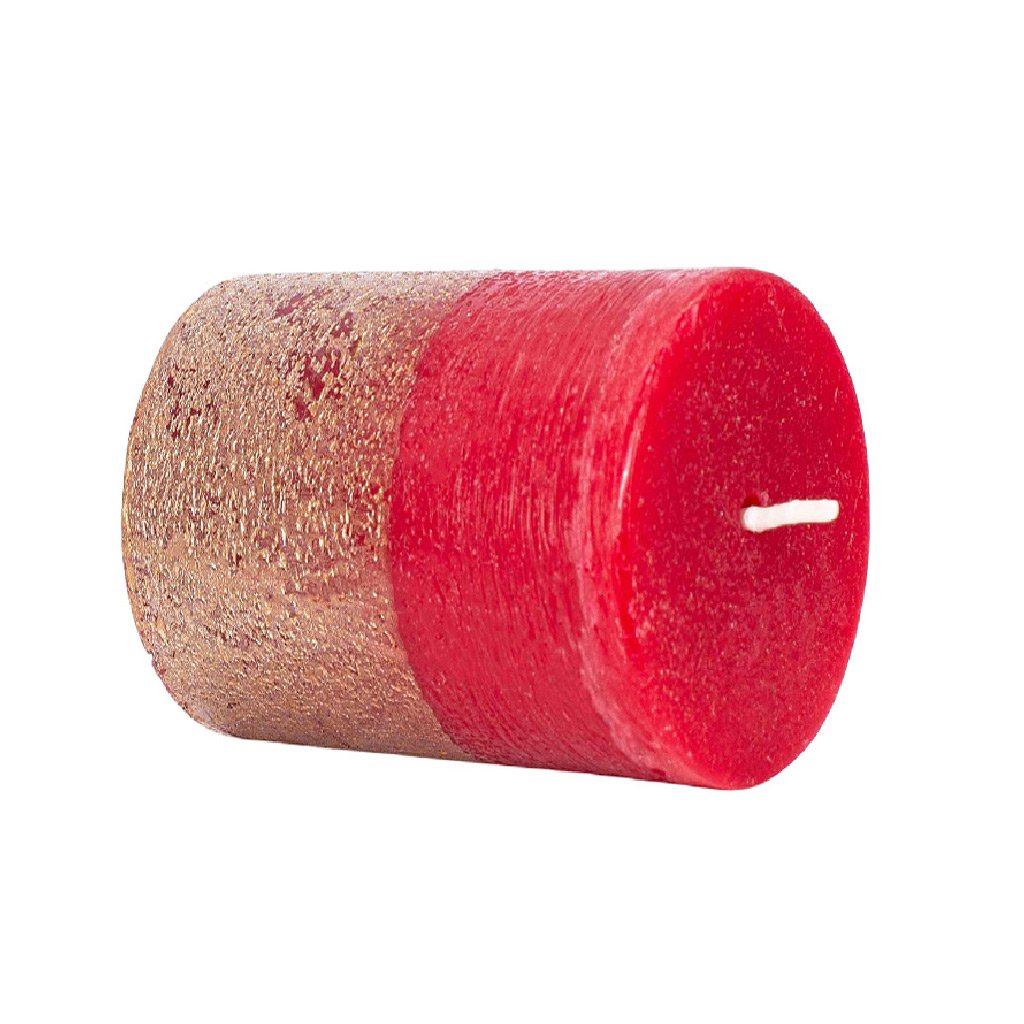 Rustikálna sviečka, metalická červená a zlatá ARÔME