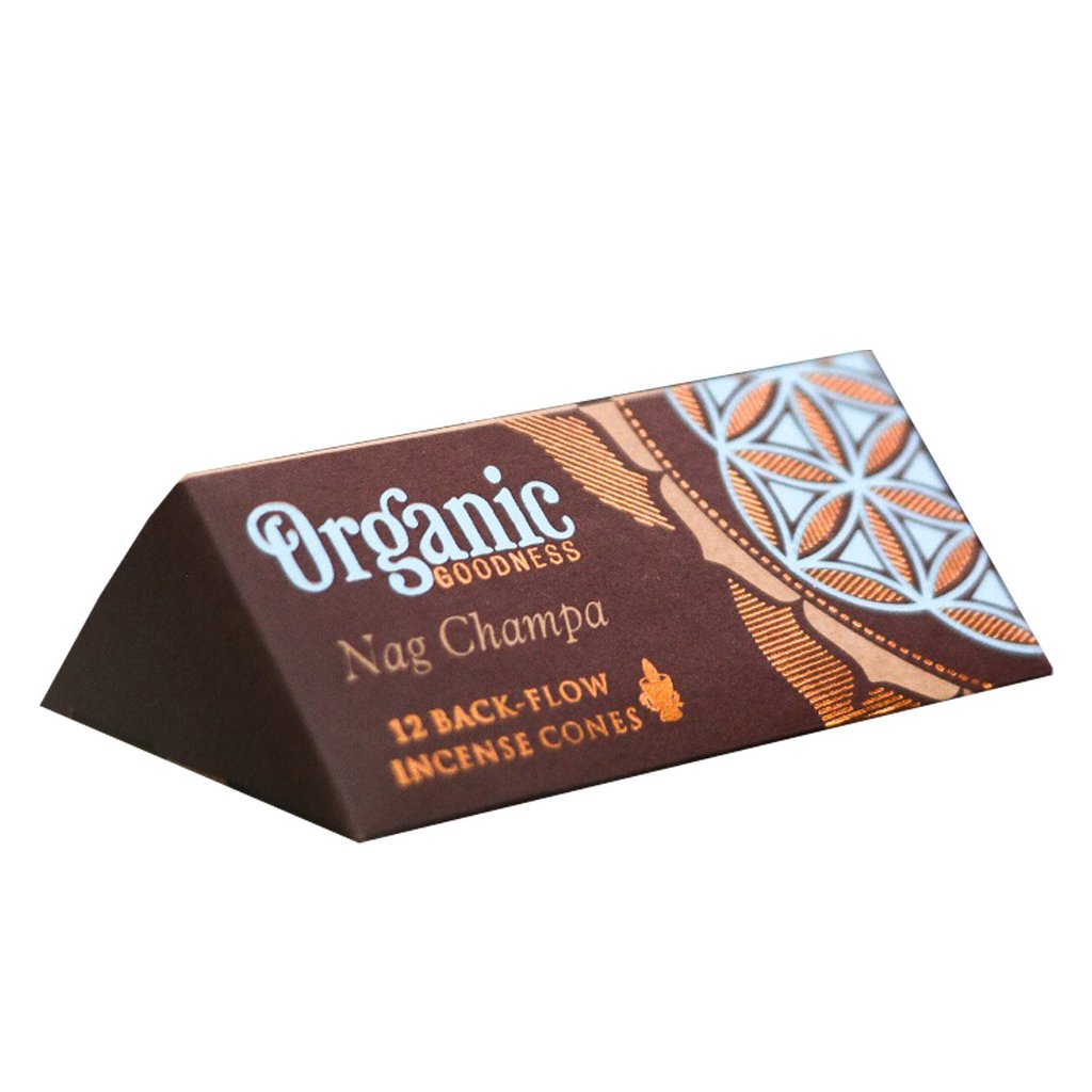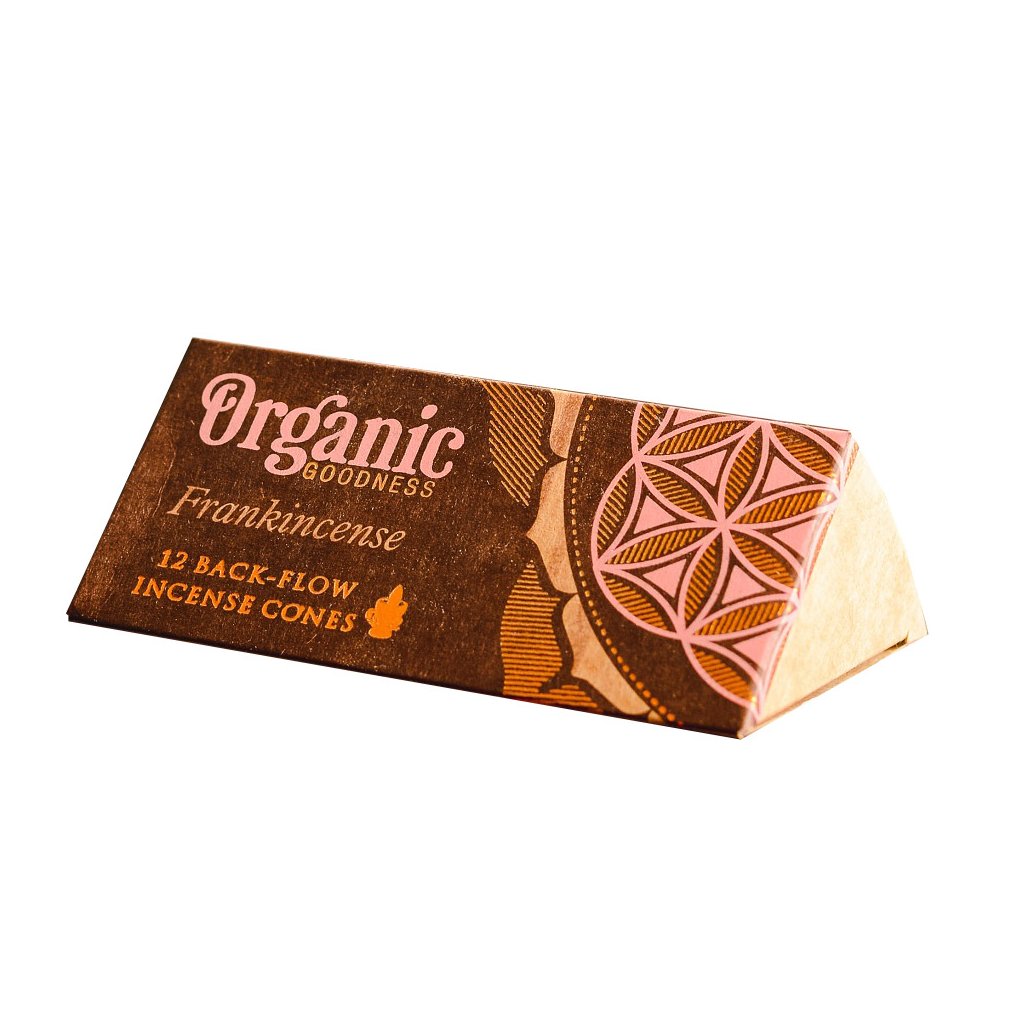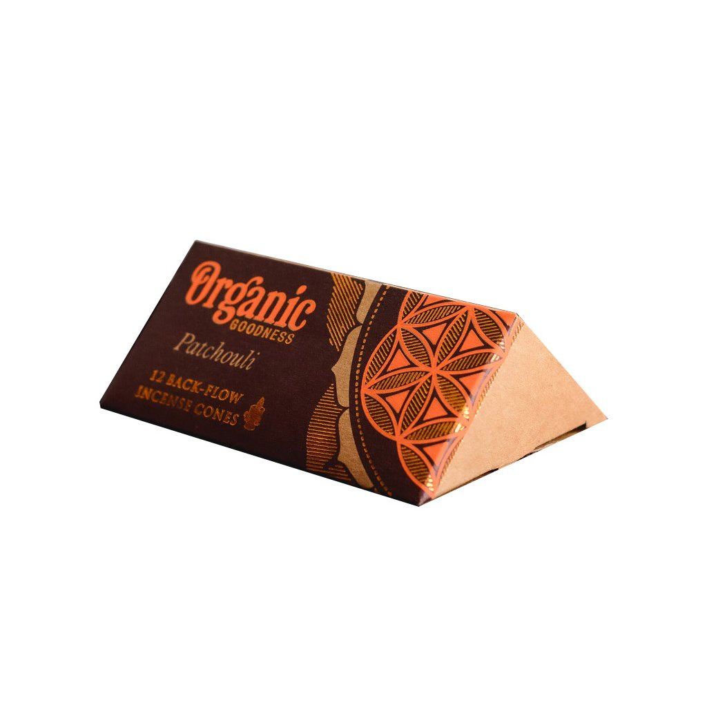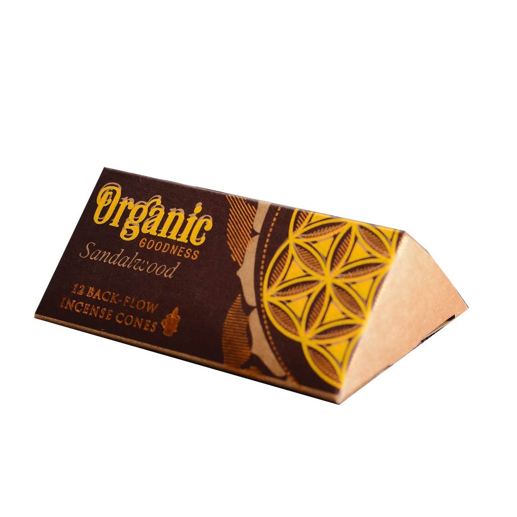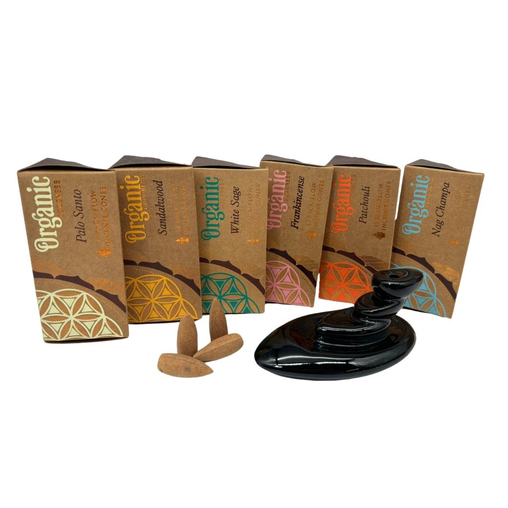 Vonné kužele Organic Goodness s efektom spätného toku vytvárajú dym, ktorý je ťažší ako vzduch. Dym tak klesá a prechádza cez otvory stojana, čím vytvára dojem prúdiaceho dymu.