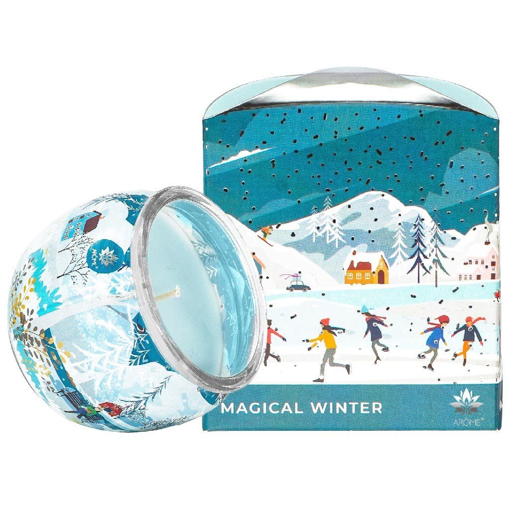 Nechajte sa uniesť kúzlom zimnej krajiny s voňavou sviečkou Magical Winter. Sviečka v sklenenej nádobe aj na obale zobrazuje malebnú zimnú scénu s korčuliarmi, ktorá vniesie do vášho domova pocit pokoja a pohody.