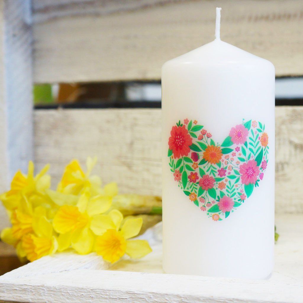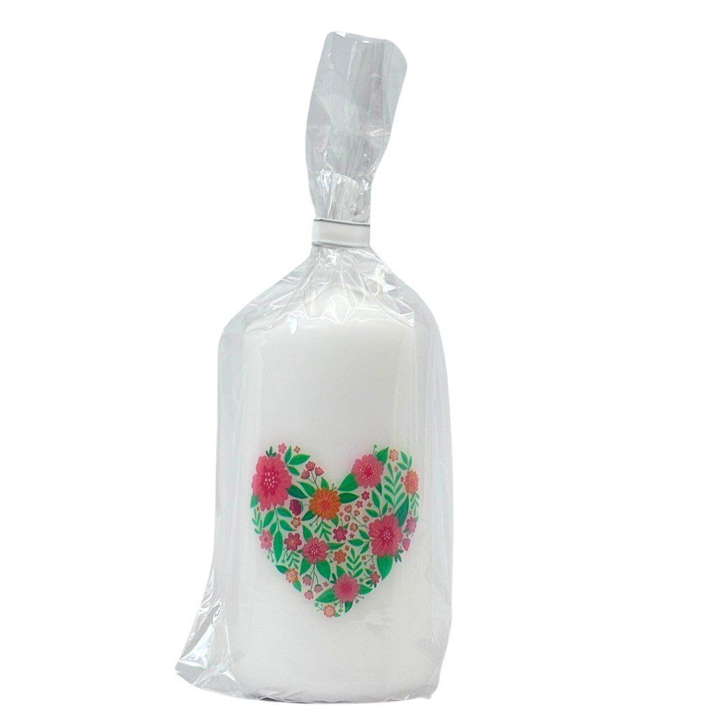 Romantická biela sviečka s farebným kvetinovým srdcom poteší každú ženu – ideálna ako poďakovanie, dekorácia alebo súčasť darčekového balíčka. Jemný motív symbolizuje lásku, vďačnosť a radosť.