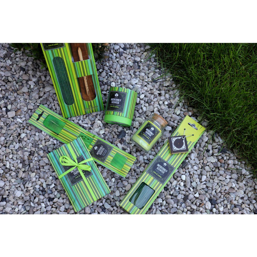 Vonná sviečka v skle a ozdobnej papierovej tube, 120 g, Limetka a liči