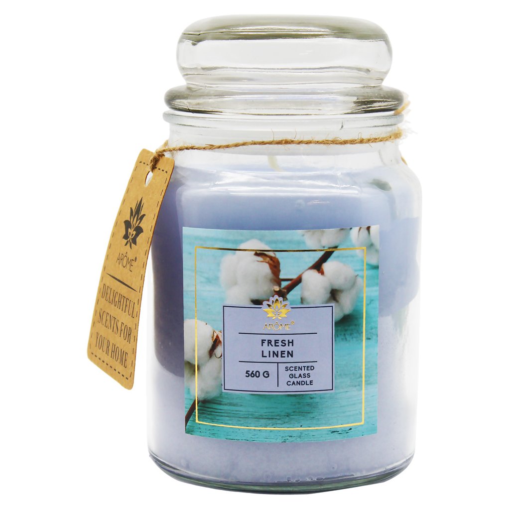 Sklenená sviečka s vôňou Fresh Linen prevonia interiér sviežou, čerstvou vôňou domova a pohodlia. Zapálená sviečka okamžite zmení atmosféru a zútulní miestnosť.