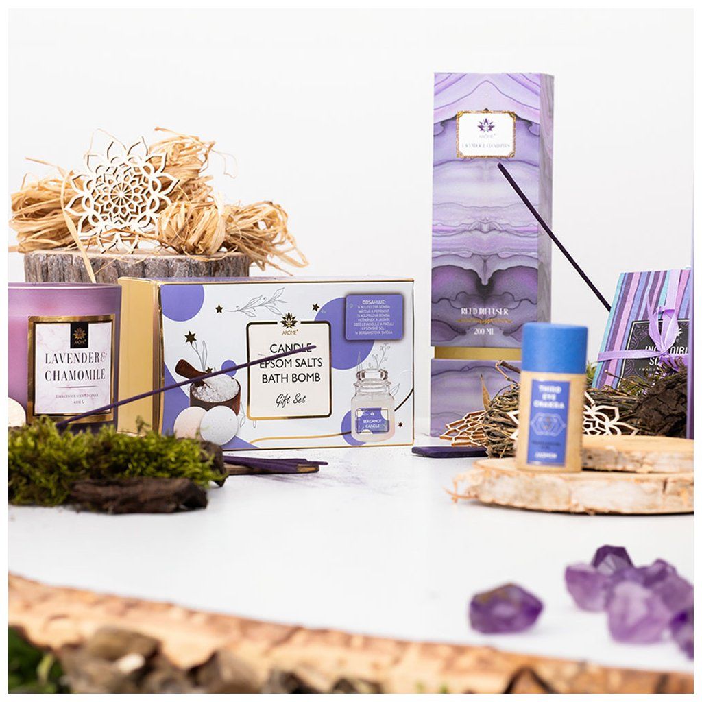 Vonná sviečka s dreveným knôtom naplní váš domov príjemnou upokojujúcou vôňou harmančeka a levandule. Drevený knôt navyše vydáva praskajúci zvuk, ktorý dotvára útulnú atmosféru pohody a uvoľnenia.