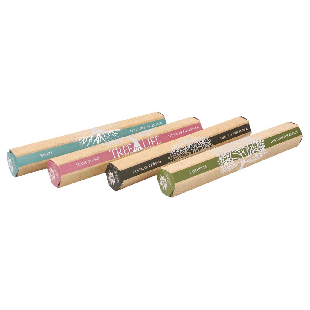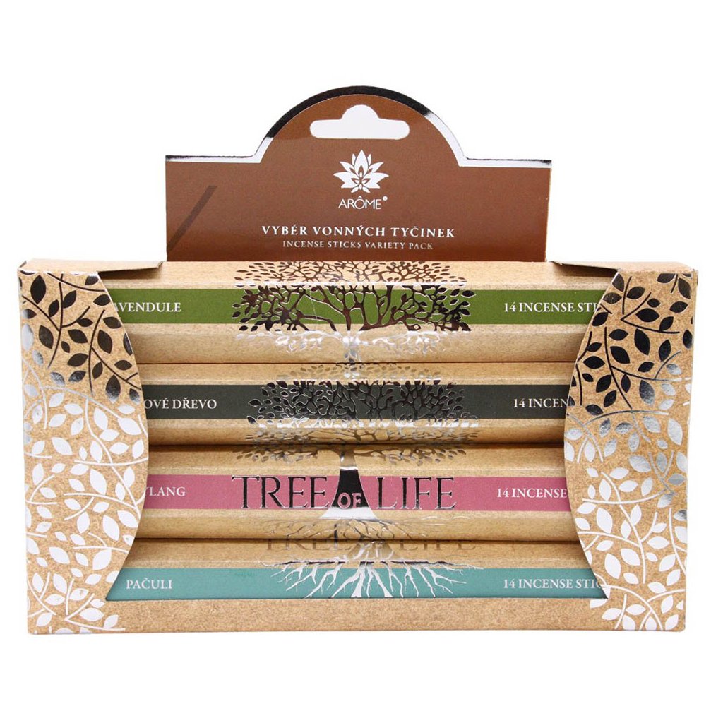 Darčeková kazeta s vonnými tyčinkami Tree of life z kolekcie ARÔME obsahuje výber 4 vôní vonných tyčiniek. Vôňa Strom života symbolizuje životnú silu, energiu, odolnosť, vytrvalosť a umenie prežiť.