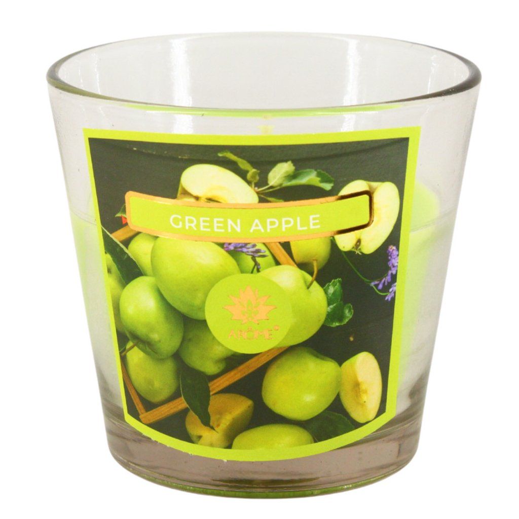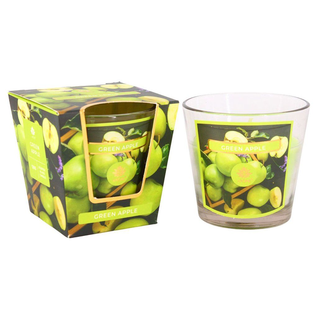Plameň sviečky pomôže vytvoriť príjemnú upokojujúcu atmosféru. Vonná sviečka v skle so sviežou vôňou zeleného jablka prevonia veľký priestor vo vašej domácnosti a je krásnym doplnkom interiéru.
