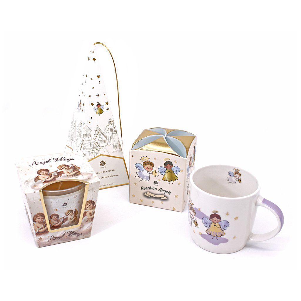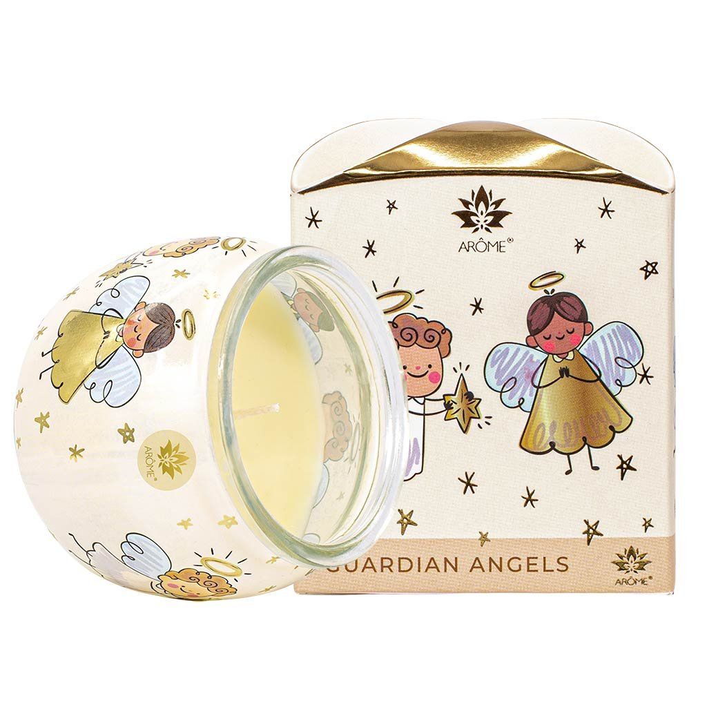 Plameň vonnej sviečky s obľúbenou vianočnou vôňou brusníc a kardamónu prevonia a rozžiari domov a vytvorí chvíle hrejivej domácej pohody. Vonná sviečka vo vianočnom dekore s anjelikmi doplní vianočnú výzdobu interiéru.