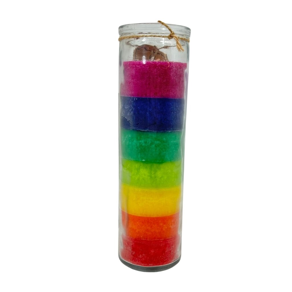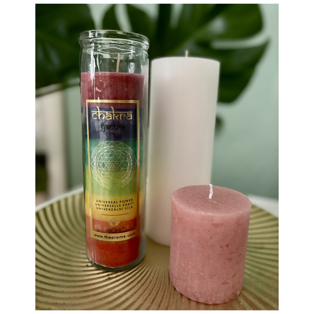 Energetické miesta v našom tele sú v hinduistickom učení popisované ako čakry. Pokiaľ sú tieto centrá zablokované, môžu nám pôsobiť rôzne ťažkosti. Pokiaľ sú všetky čakry v harmónii, je harmonický i život človeka. Pretože má sviečka 7 farieb jedná sa o univerzálnu silu.