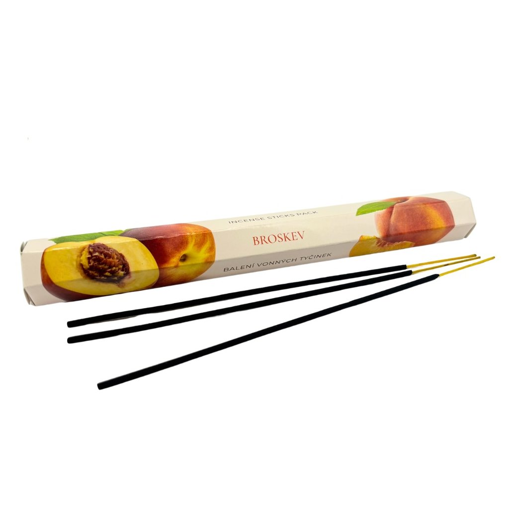 Tlejúca vonná tyčinka s vôňou broskýň umocní vaše pocity počas meditácie alebo relaxácie. Voňavý dym vytvára zvláštnu atmosféru a prevonia miestnosť nezvyčajnou a špecifickou vôňou. Vyskúšajte ju, možno pri posedení s priateľmi.