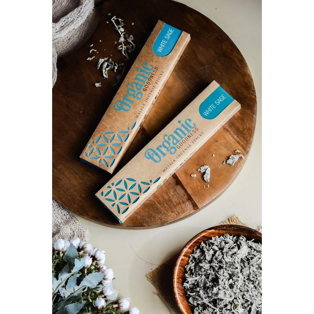 Prírodné vonné tyčinky Organic Goodness sú vyrobené z 96 % z organických materiálov. Vôňa bielej šalvie.