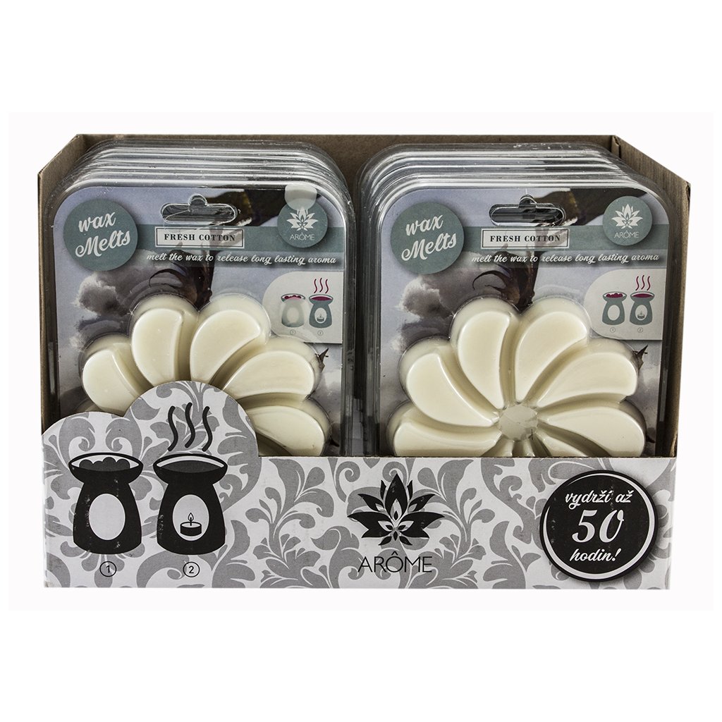 Vonný vosk od značky Arôme s příjemnou vůní Fresh Cotton dodá Vašemu domovu tu pravou atmosféru. Je určen k rozpouštění v běžných aromalampách pomocí čajové svíčky. Vonné vosky mají intenzivní aroma a rychlý nástup, mezi bytovými vůněmi patří k nejvýkonnějším. Vonné vosky navíc můžete libovolně kombinovat a vytvořit tak zcela unikátní vůni.