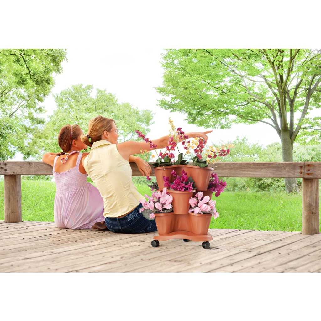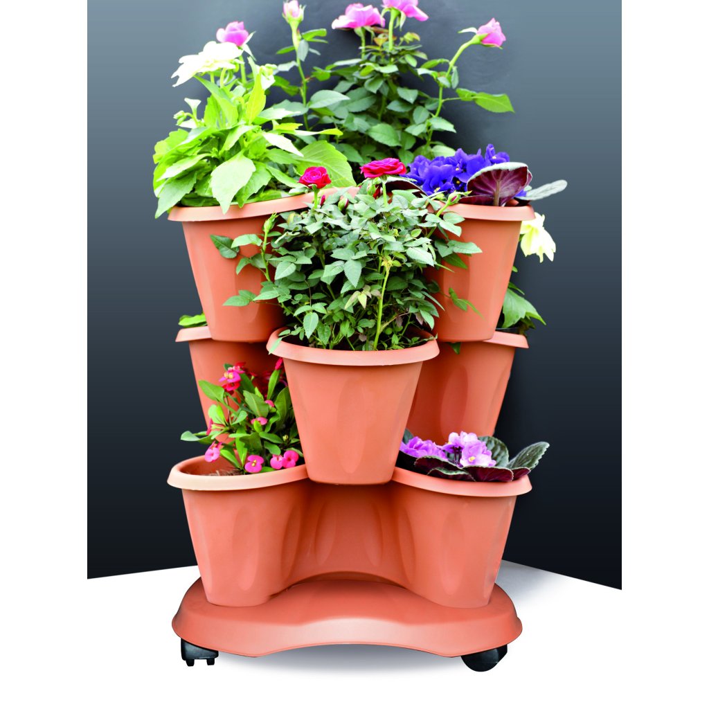 Modulárny kvetináč TRIFOGLIO umožňuje pestovať kvety, bylinky alebo jahody na viacerých úrovniach. Objem 3 x 6 l