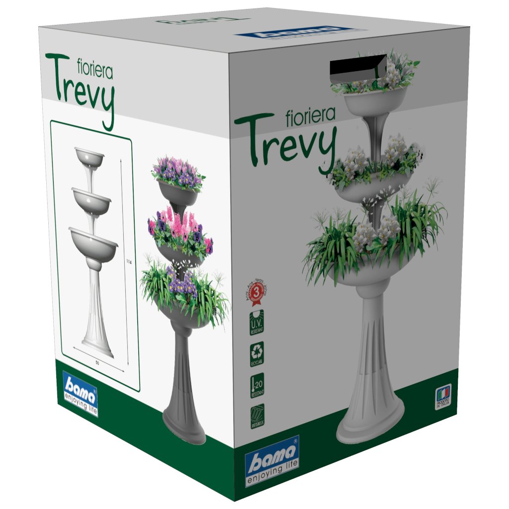 Kvetináč TREVY sa skladá z troch misiek s priemerom 30, 40 a 50 cm spojených súpravou priehľadných podstavcov a nosného stĺpika. Kvetináč TREVY umožňuje vytvárať kvetinové kaskády s veľkým estetickým účinkom. Ideálny pre vnútorné aj vonkajšie priestory.