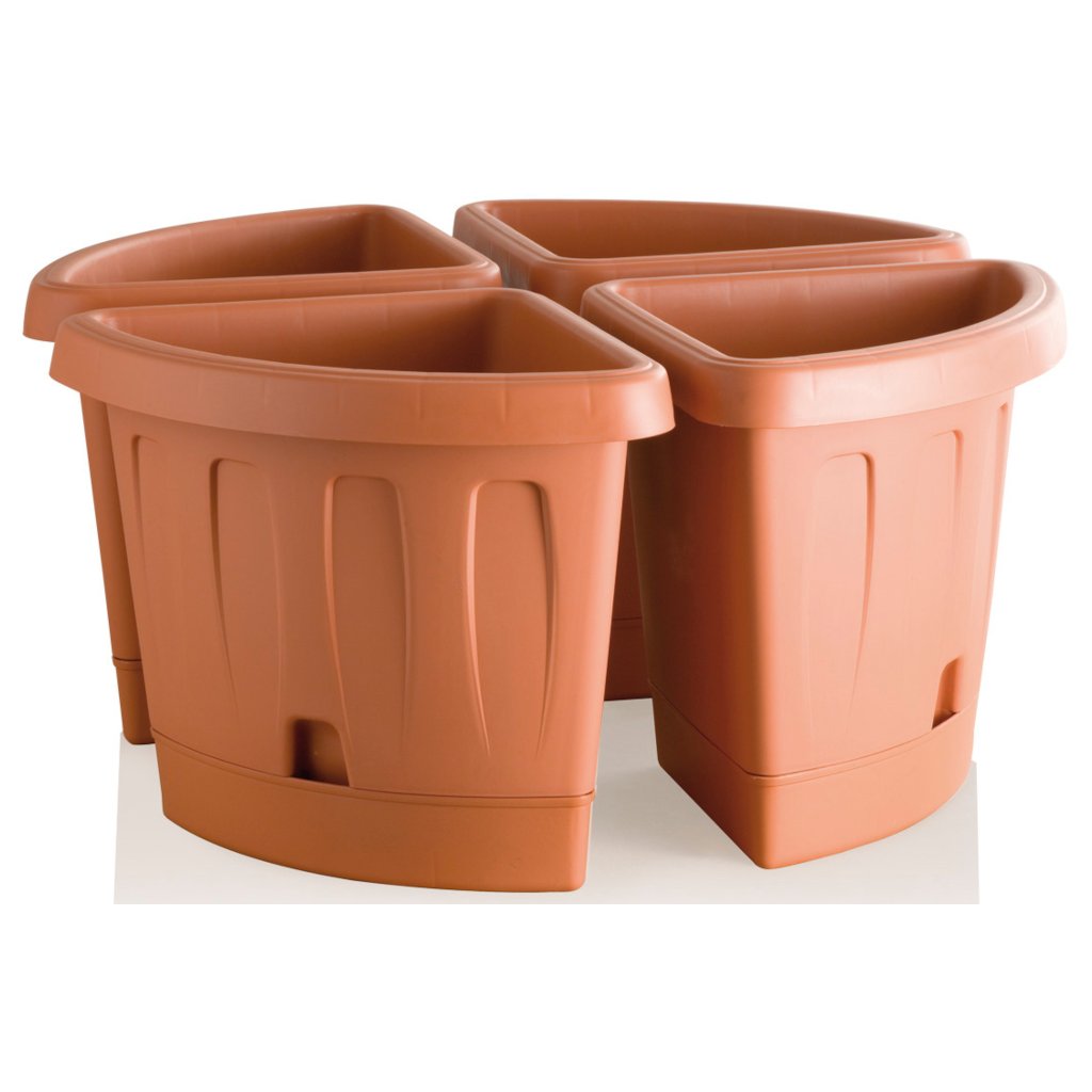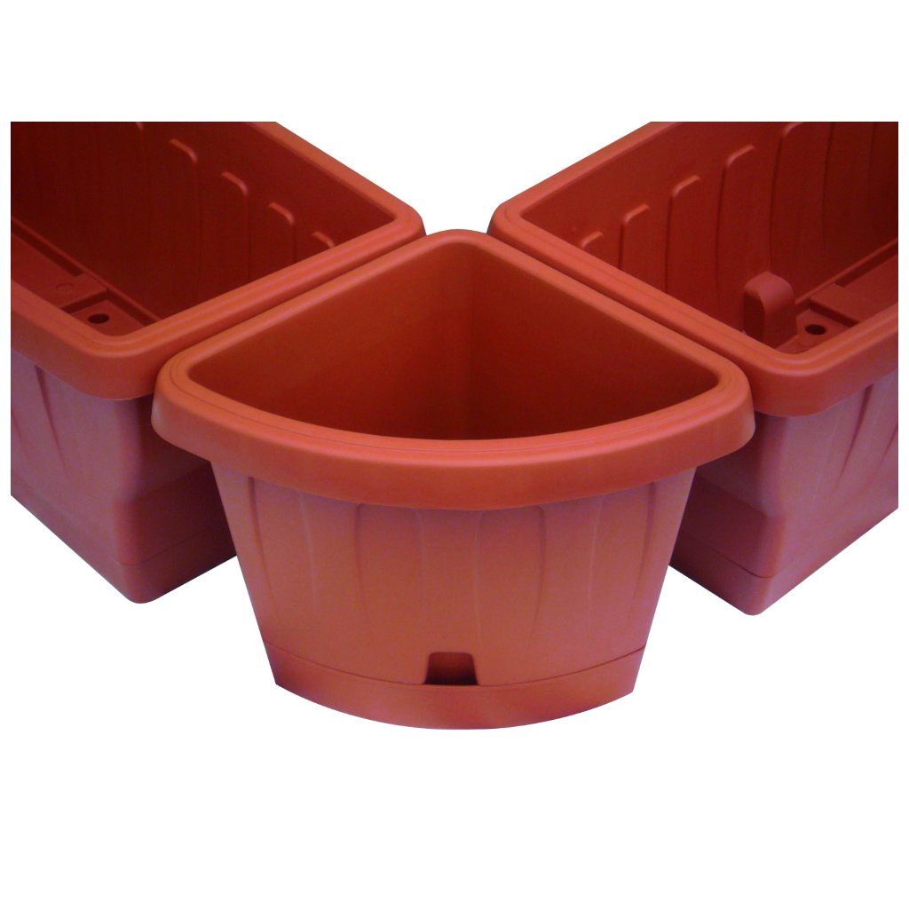 Priestranný rohový kvetináč s funkčnou miskou na vodu umožňuje vytvárať rôzne kombinácie napríklad s inými kvetináčmi. Vďaka rohovému dizajnu môžete využiť aj každý priestor na balkóne, terase alebo schodisku.
