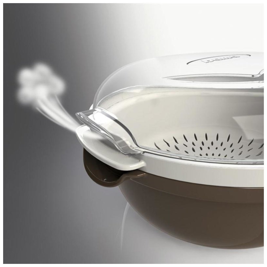 Jedinečný parný hrniec COOKY do mikrovlnnej rúry s priehľadným glazovaným vekom je vynikajúci na jednoduché a rýchle varenie v pare, ako aj na ohrievanie a rozmrazovanie potravín bez tuku a vďaka vareniu v pare si zachováva vitamíny a minerálne soli. Priestranná nádoba je vybavená naparovačom.
