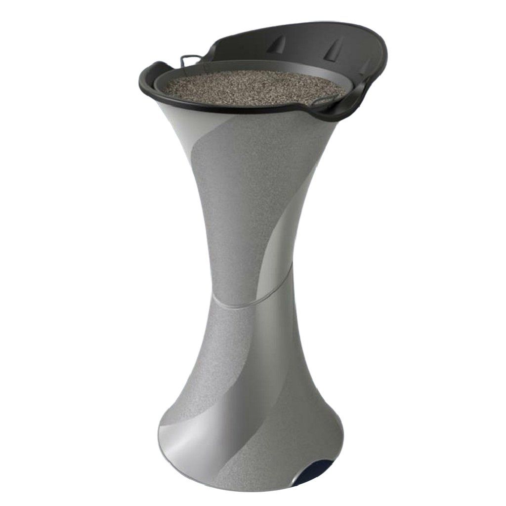 Stojan je vyrobený z kvalitného plastu, vďaka čomu je pevný, stabilný a odolný voči vonkajším podmienkam. Funkčné sitko s pieskom zabezpečuje potrebnú bezpečnosť a zároveň umožňuje jednoduché a rýchle čistenie. Popolník sa vyznačuje elegantným a nenápadným dizajnom, ktorý predstavuje praktický aj dekoratívny doplnok.