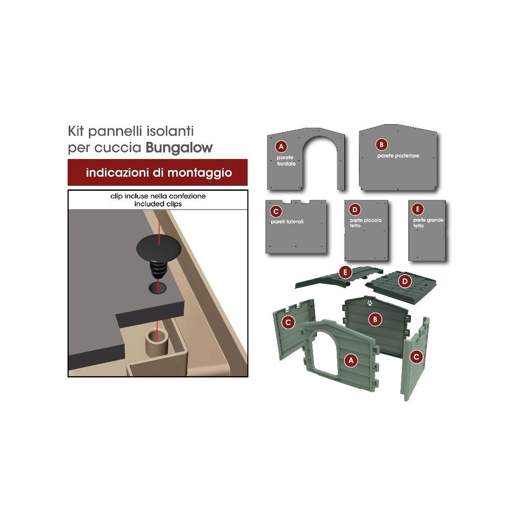 Súprava pre psiu búdu Medium plní funkciu zlepšenia tepelnej izolácie. Panely sa ľahko montujú vďaka existujúcemu nastaveniu na búde a priloženým skrutkám.