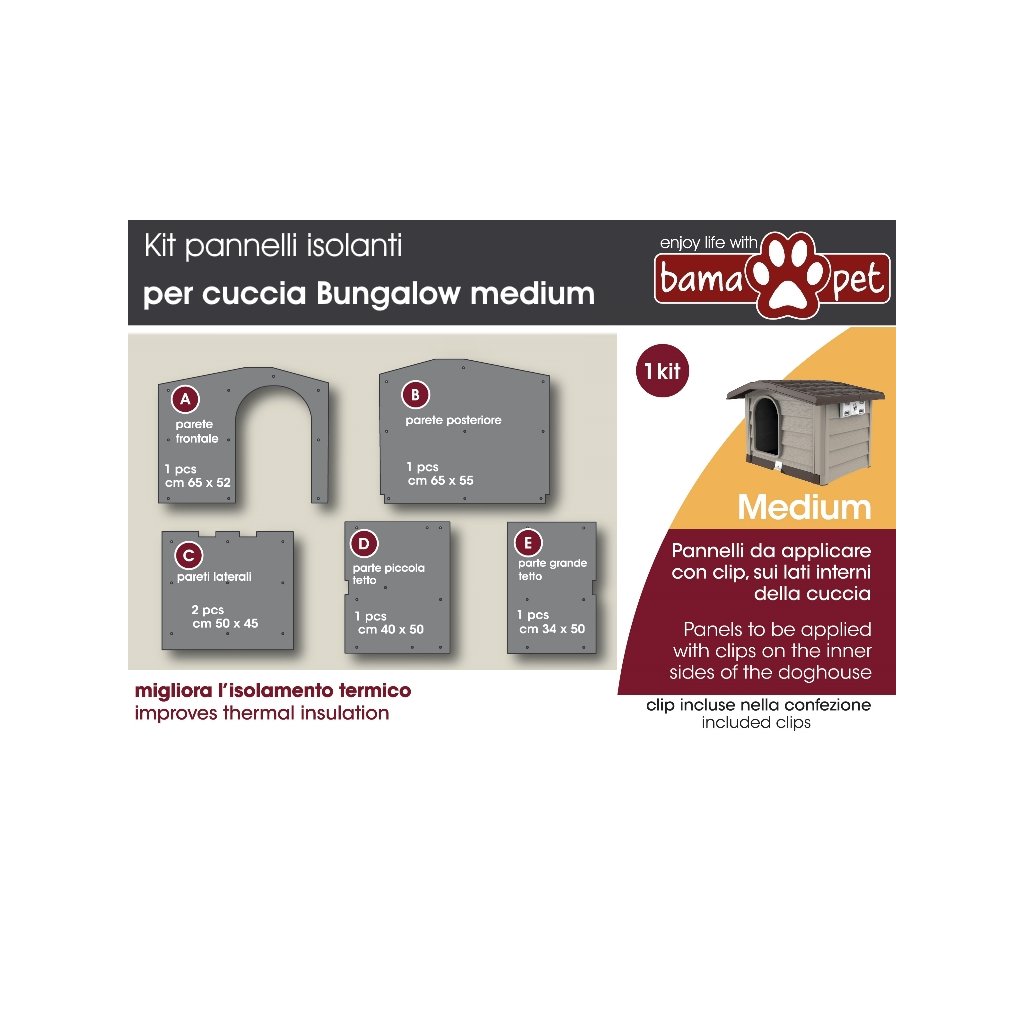 Súprava pre psiu búdu Medium plní funkciu zlepšenia tepelnej izolácie. Panely sa ľahko montujú vďaka existujúcemu nastaveniu na búde a priloženým skrutkám.