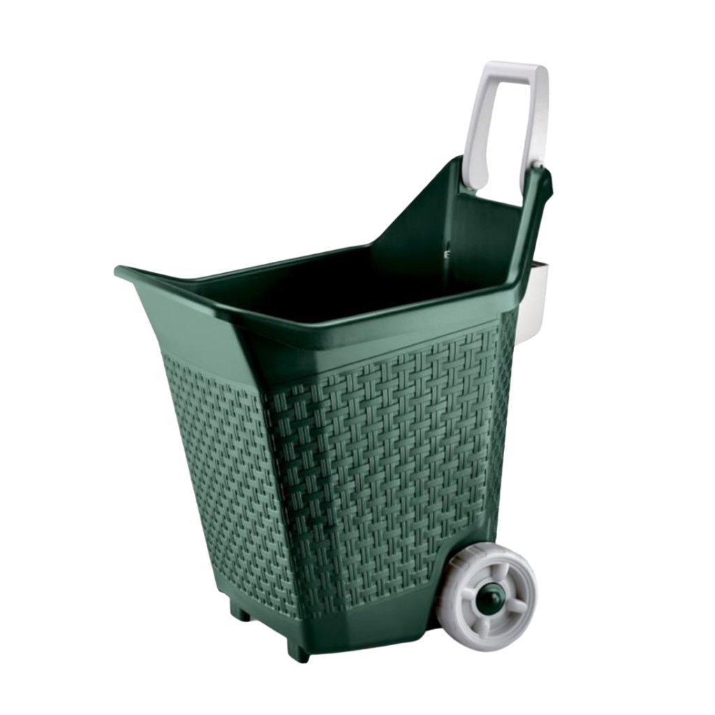 Multifunkčný plastový záhradný vozík KART od talianskeho výrobcu BAMA. Elegantný slamený dizajn v zelenej farbe. Ideálny, praktický pomocník na rôzne činnosti v záhrade alebo na farme.