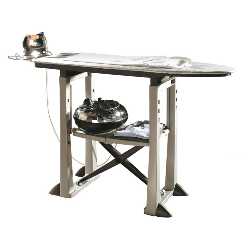 Žehliaca doska novej generácie umožňuje dokonalé žehlenie, pretože je nastaviteľná do rôznych výšok a vďaka funkčnej poličke, na ktorú možno odložiť žehličku, vám umožní mať dostatok priestoru na jednoduché žehlenie! Je vybavená priedušnou doskou a odkladacím priestorom na žehličku. Dá sa zložiť, aby sa ušetrilo miesto. Keď je zložená, stojí samostatne.