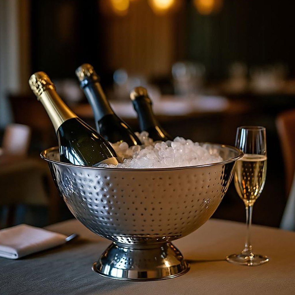 Elegantná nerezová chladiaca nádoba Kinghoff s tepaným povrchom je dokonalým doplnkom pre slávnostné príležitosti aj domáce oslavy. Vďaka svojmu nadčasovému dizajnu a robustnej konštrukcii pôsobí luxusne a zároveň zaručuje dlhú životnosť.