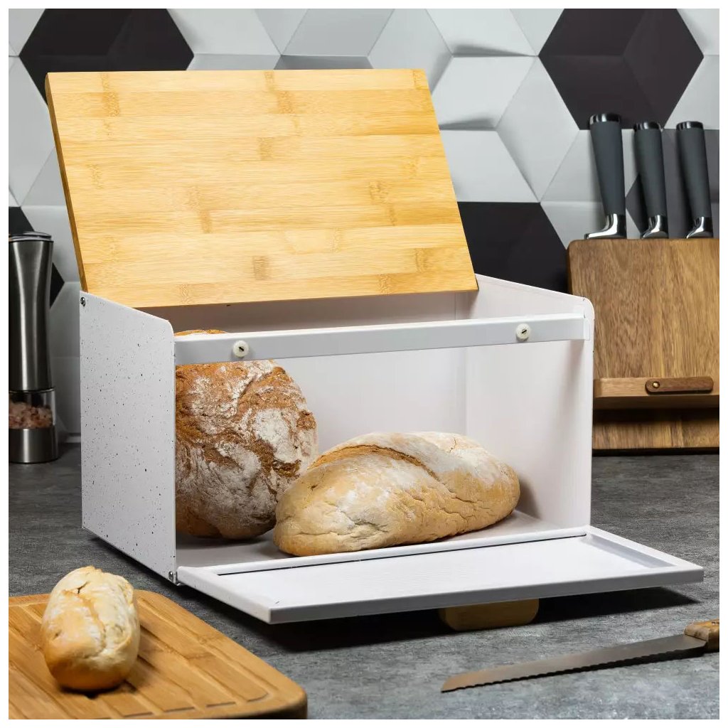 Štýlový a elegantný zásobník na chlieb s veľkou kapacitou. Vyrobený z ekologických materiálov.