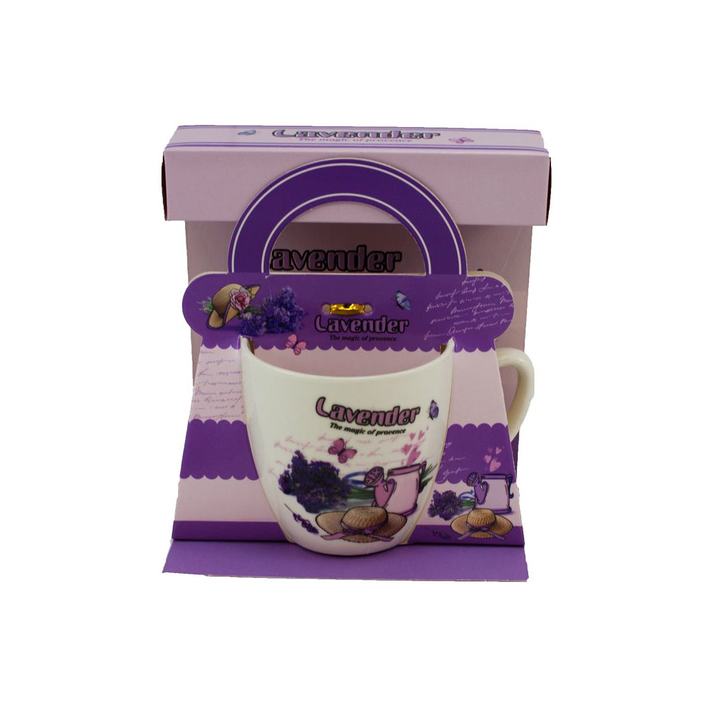 Krásny detský hrnček v darčekovej taške. Hrnček je zdobený levanduľou a tiež detskými obrázkami, o ktorých sa môžete s dieťaťom rozprávať ako nad obrázkovou knižkou. Je to ten najlepší tip na darček.